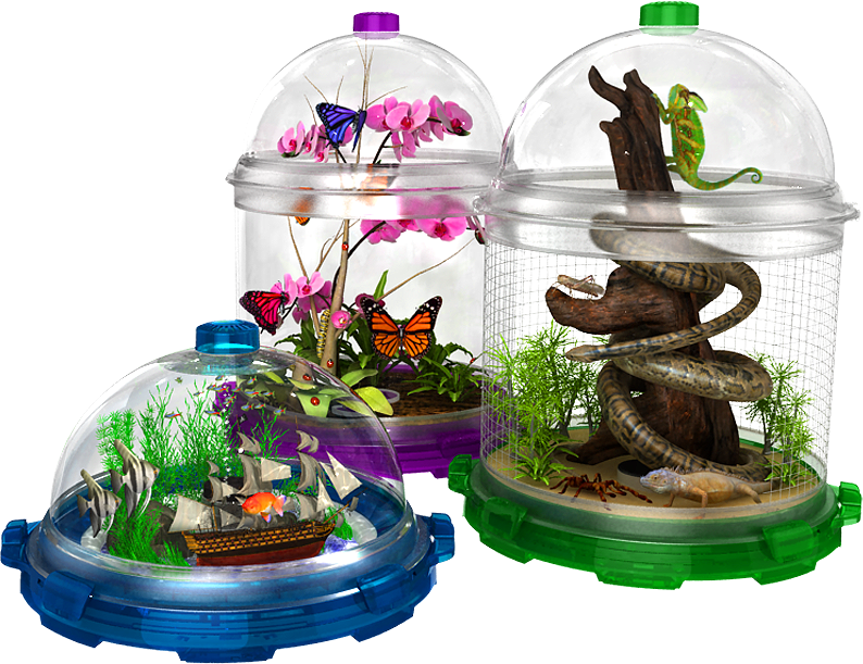 and not an accurate depiction of size, number or mix of inhabitants. Adults should use this unit as a teaching tool not only about the wonders of nature, but how to humanely keep and ultimately release wild bugs and creatures. When animals are purchased from a pet store parents should teach about the responsibility of humanely caring for the animal. Very safe around other pets. When using the unit as an aquarium, clean the dome inside and out with a damp soft wet towel to avoid scratching. Change the filter pad monthly along with 50% of the water. |